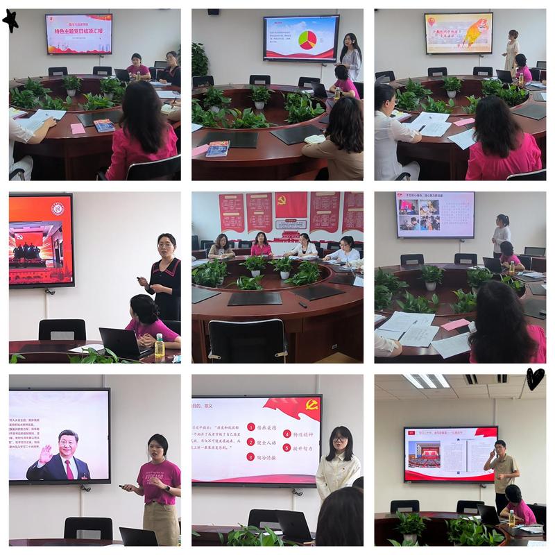 会上,各个党支部围绕特色主题党日开展背景、活动设计、活动准备、实施项目、活动开展流程、取得成效以及党支部建设、党员先锋模范作用发挥、活动总结等方面进行充分展示。从组织观看《革命者》到参观中共一大会址,从重读党章到深入学习党规党纪,从研读红色经典到开展志愿服务活动,从聆听讲座到赴康健外国语小学开展“国学经典”选修课。各党支部认真贯彻关于“学懂弄通做实党的二十大精神”的要求,充分发挥党支部战斗堡垒作用和党员的先锋模范作用,党支部积极营造浓郁的学习氛围,支部党员坚持读原著,提升理论深度,党性锻炼进一步增强;通过合作学习、交流学习实现知识共享、共同进步。