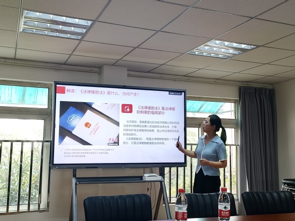在上海市杨浦区法律援助中心工作人员的带领下,上海师范大学法学社参观了杨浦区法律援助中心并且深入了解各窗口的工作职能和办理业务的流程。法律援助中心的律师从法律援助范围、法律援助申请标准、法律援助的管辖和申请法律援助需要提交的材料四个方面开展《法律援助法》普法讲座,结合劳动合同典型案例宣讲,与现场的观众互动交流,现场气氛热烈。