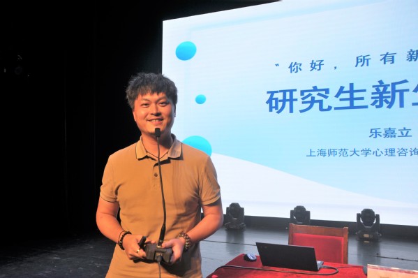 上海师范大学心理咨询与发展中心副主任乐嘉立以研究生新生适应为主题,以“举手与身边的人击掌”的小游戏作为开场,邀请在场同学共同参与,调动全场气氛。从“适应困难的本质、适应困难的信号、应对方案planA、经常被排除的planB”四个方面告诉大家请像对待肉体一样对待心灵,甚至,更加用心。并向介绍了校内心理咨询中心,鼓励大家不讳言精神状况,善用资源,主动求助。