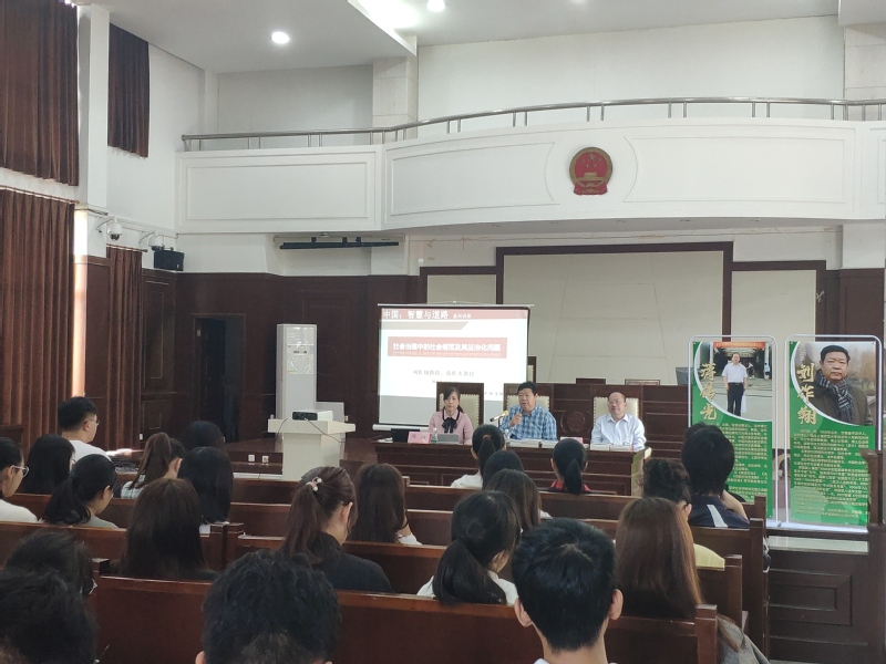 讲座伊始,刘作翔教授就国家与社会生活中的法治化问题进行分析。他指出:要回答中国的法律体系,就要从《立法法》入手。随后,刘教授从近年来引发社会高度关注的一些案例出发,将深奥的法学知识融入案例分析中,向同学们解释了社会规范的定义、功能、类型等问题。此外,刘作翔教授还从法治化的视角,提出对社会规范进行规范化、程序化、制度化。