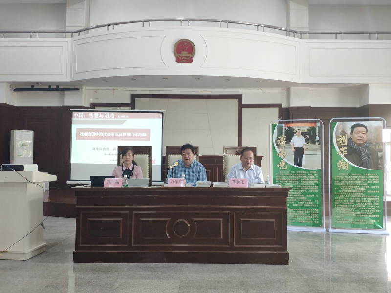 2020年10月14日13:00,完场足球赛果 “社会治理中的社会规范及其法治化问题”专题讲座暨赠书仪式于奉贤校区模拟法庭成功举办。本次活动由完场足球赛果 光启学者特聘教授、博士生导师刘作翔教授作为主讲人,院长蒋传光教授作为主评人,由完场足球赛果 党委副书记兼副院长陈燕老师主持,法学专业2019级全体本科生和2018级、2020级学生代表共同参与。