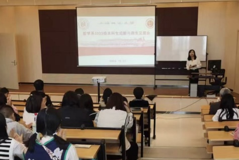 2023级“道德与法治”专业的班导师张晓兰副教授向本科新生们作教师寄语,强调“一个关键词”——批判性思维,并从四个方面展开:理性的思维、反思的思维、旨在决定“该相信什么”、决定“该做什么”。2023级哲学专业的班导师张蝶老师向本科新生们作教师寄语,希望2023级新同学们在哲学的学习过程中既要“学进去”,又要能够“走出来”,成为身心健康、人格健全、德才兼备的优秀人才。