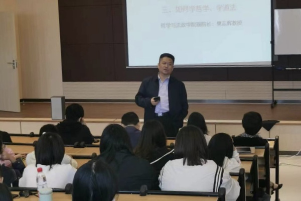 哲学系系主任张自慧教授介绍了哲学系基本情况、本科教学改革与学生培养事宜;法律系系主任李峰教授就道法专业人才培养及法律类课程的开设作了讲话。张自慧教授对新同学表示热烈欢迎,并回顾了十一届学术节的铿锵步履、辉煌历程,希望新同学们在今年的学术节上展示风采;张自慧教授还期盼同学们在自己的师大岁月里,牢记系训“上善浚哲”,奋发向上,多思善思,学有所成,不负韶华,实现梦想。