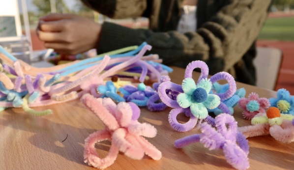 参与者在工作人员指导下,完成扭扭棒手作,弘扬“奉献、友爱、互助、进步”的青年志愿者精神。
