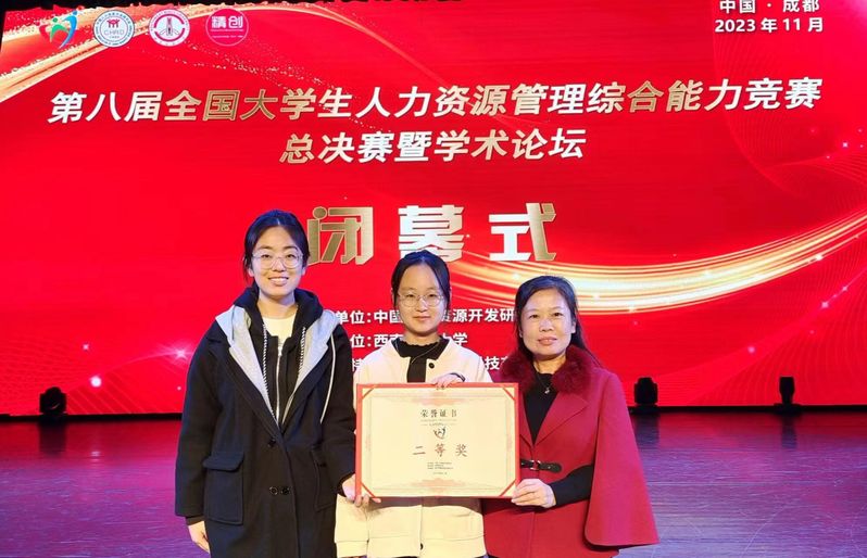 20231110-12日,第八届全国大学生人力资源管理综合能力竞赛全国总决赛在西南民族大学盛大举行。这是一场人力资源管理领域的巅峰对决,共有来自全国85所院校的88支队伍参加。我校由张燕娣老师带队参加了此次比赛。在这场激烈的角逐中,江雪菲、郭梦雪和袁潇宁小队凭借出色的表现,荣获了全国总决赛二等奖。这三位同学不仅用实力证明了自己在人力资源管理领域的才华和实力,更通过自己的努力为自己赢得了荣誉。他们的优异表现,无疑也为其他同学树立了榜样,展示了人力资源管理专业学子的风采。