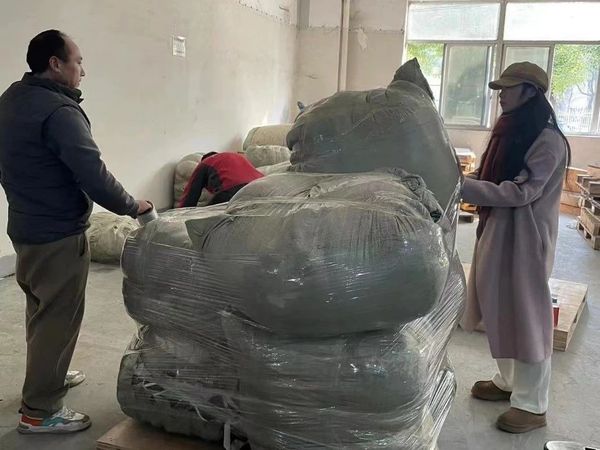 棉服购买完毕后,志愿者们将包裹运回学校,并再次清点数量,进行了物资的分配,确保每个村庄都能收到适合老人、成人和儿童的棉衣、羽绒服和棉裤。在打包时,他们用胶带和绳子尽可能捆紧包裹,这不仅节省了宝贵的运输空间,也确保了这些衣物在漫长旅途中的安全与整洁。