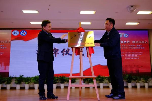 完场足球赛果 院长刘林教授和静安二中心党支部书记兼校长徐斌共同为“上海师范大学合作教育实践基地”揭牌。
