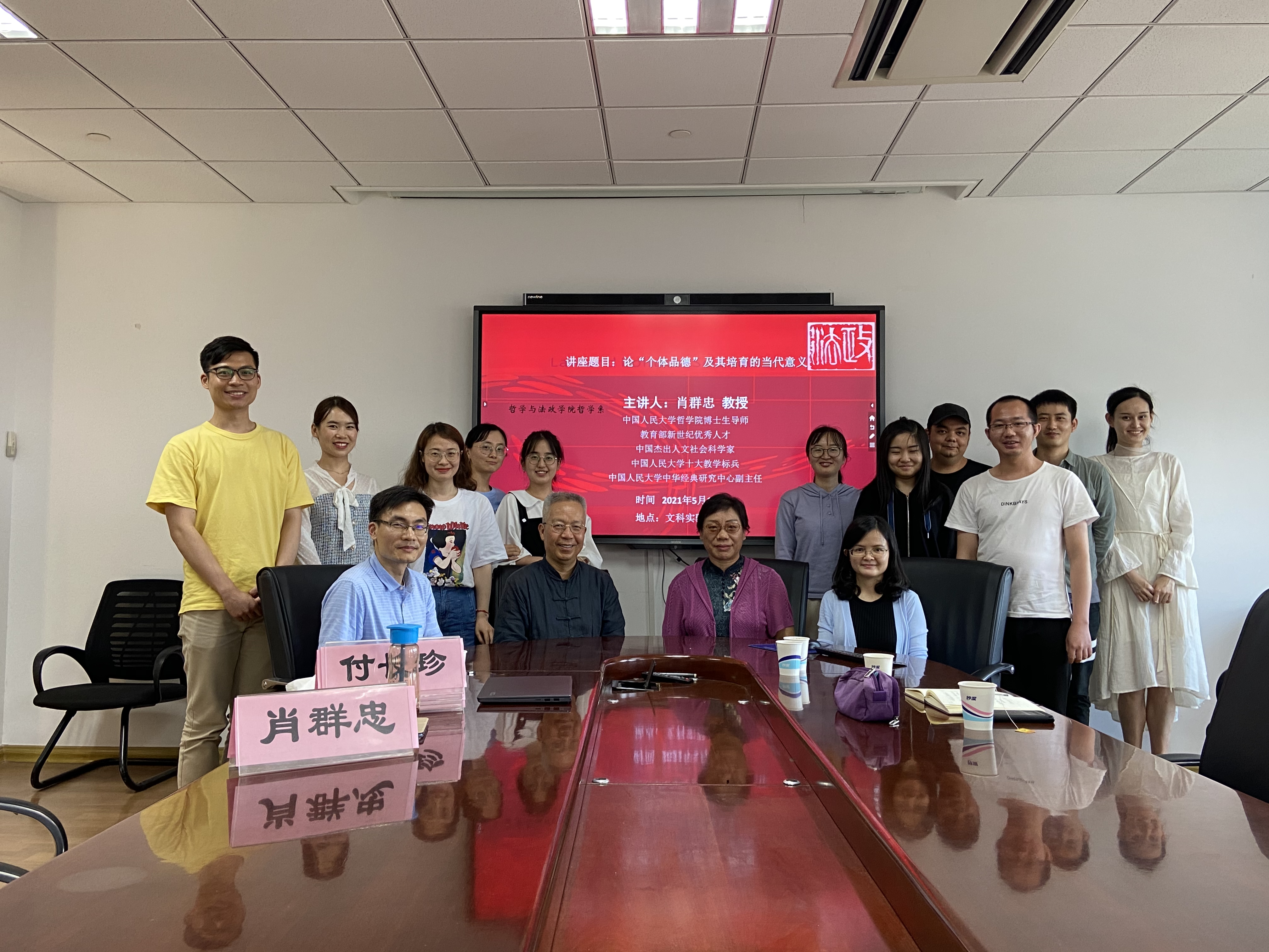 2021年5月14日下午,中国人民大学哲完场足球赛果 教授、博士生导师,中华经典研究中心副主任肖群忠先生应邀在最新足球成绩 文科实验楼906作题为“论‘个体品德’及其培育的当代意义”的讲座。讲座由哲学系系主任张自慧教授主持,哲学系部分教师、博士生和硕士生等二十余人聆听了讲座。