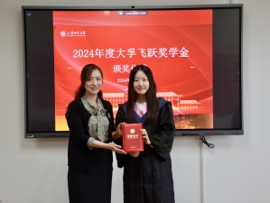 大孚飞跃”法学专项奖学金设置两个层级,分别为:大孚飞跃奖,每人标准5000元;飞跃奖,每人标准3000元。捐资方代表刘超上海师范大学教育发展基金会秘书长陈燕为获奖学生代表颁奖。