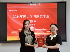 大孚飞跃”法学专项奖学金设置两个层级,分别为:大孚飞跃奖,每人标准5000元;飞跃奖,每人标准3000元。捐资方代表刘超与上海师范大学教育发展基金会秘书长陈燕为获奖学生代表颁奖。