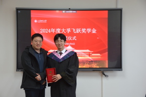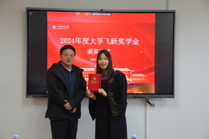 本年度大孚飞跃奖获奖代表白莹、魏嘉仪和飞跃奖获奖代表邱圣琦、黄辉亮感谢捐资方并汇报了奖学金使用规划。捐资方代表刘超作为上海师范大学法学专业2009届校友向学弟学妹们分享了法律实务工作的经验和心得,鼓励学弟学妹珍惜大学时光,求真务实,厚德博学。