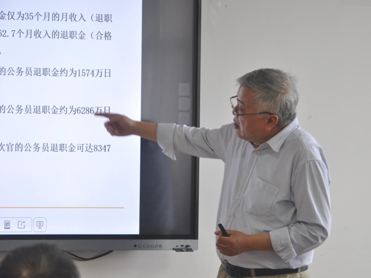首先,臧老师对讲座主题和案例选择进行了阐释。他从资本主义国家防腐的需要、透明国际“清廉指数”中的日本、日本公务员“廉洁”原因的解释和日本国家公务员的职业报酬支付模式四个方面,对研究的问题意识,以及日本国家公务员职业报酬模式的基本情况进行了详细的阐述。