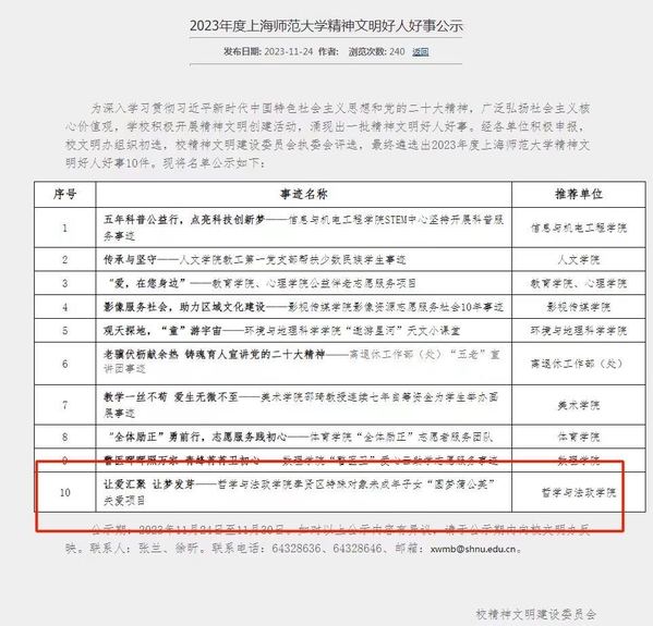 2023年度上海师范大学精神文明好人好事