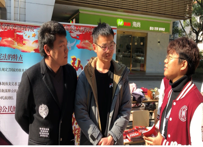 12月4日,上海师范大学的普法志愿者们在奉贤区海棠社区以及滩浒新村进行了“宪法宣传日”的普法活动。志愿者们分为两个小组,通过送“法”上门的方式,向社区居民进行宪法知识的宣传以及渔具相关规定的普及。在宣传之中,志愿者们对于居民所提出的法律疑问进行了耐心、细致的解答。同时针对社区里部分居民的特殊情况,志愿者们采用更为细致的方式,用通俗易懂的语言、真实生动的案例进行了专业的讲解,有效地增强了社区人民群众的法律意识和法治观念,为提升社区群众的宪法意识,努力营造学法、用法、知法、守法的社会氛围,维护社会和谐与稳定贡献出自己的力量。