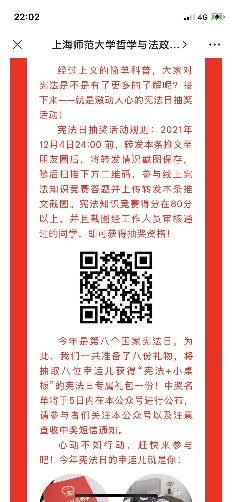 2021年12月4日是我国第8个国家宪法日暨上海市第33届宪法宣传周,正值中国共产党成立100周年之际,为积极响应上海市教卫工作党委宣传处、上海市教卫系统法宣办的活动要求,深入学习贯彻党的十九届六中全会精神,学习宣传习近平法治思想,完场足球赛果 依托法学专业优势,在校内外组织开展宪法宣传周系列活动,掀起了宪法学习的新高潮,弘扬宪法精神,维护宪法权威,助力法治上海建设。