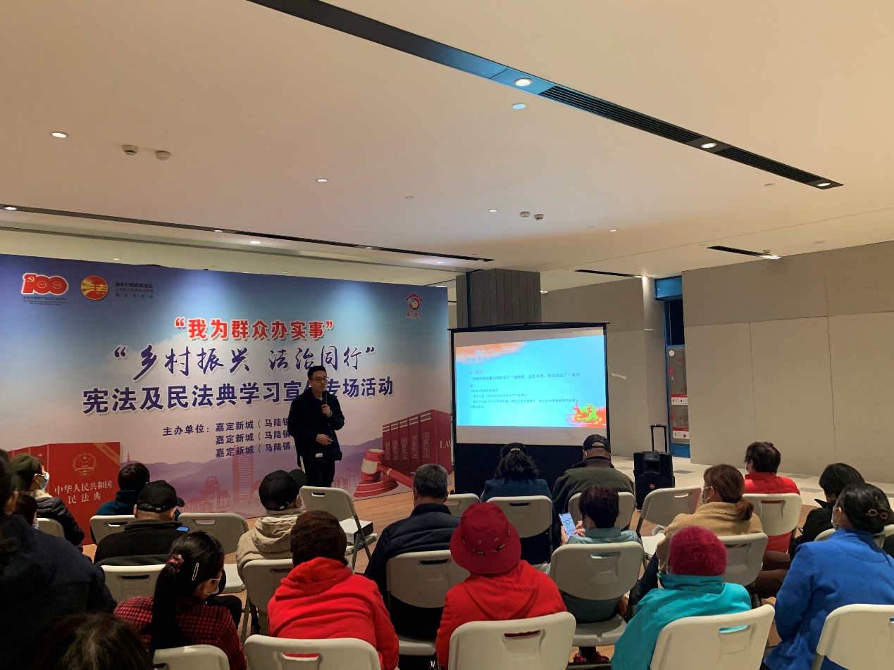 同时,由嘉定新城马陆镇法宣办主办的“‘乡村振兴,法治同行’宪法及民法典学习宣传”专场活动在吉宝绿地缤纷城如期举行,来自完场足球赛果 法律硕士专业的同学们以“普法客厅”青年普法学生讲师的身份为社区居民带来了一堂生动的普法教育课。主讲人顾哲琪同学以“人的一生”为主要线索,将原本严肃的宪法转化为生动的语言,形象地介绍了宪法与每个公民的联系,提高了现场居民朋友们对宪法的作用和地位的认识。现场参与活动的居民朋友们对普法课堂给予了高度评价。