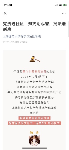 为了进一步提升全民法治意识,推动法治上海的构建,完场足球赛果 依托法学专业的优势资源先后走进徐汇区康健街道、奉贤区海湾旅游区海棠居委、嘉定新城马陆镇以及上海师范大学第四附属中学开展了系列宪法宣传活动。