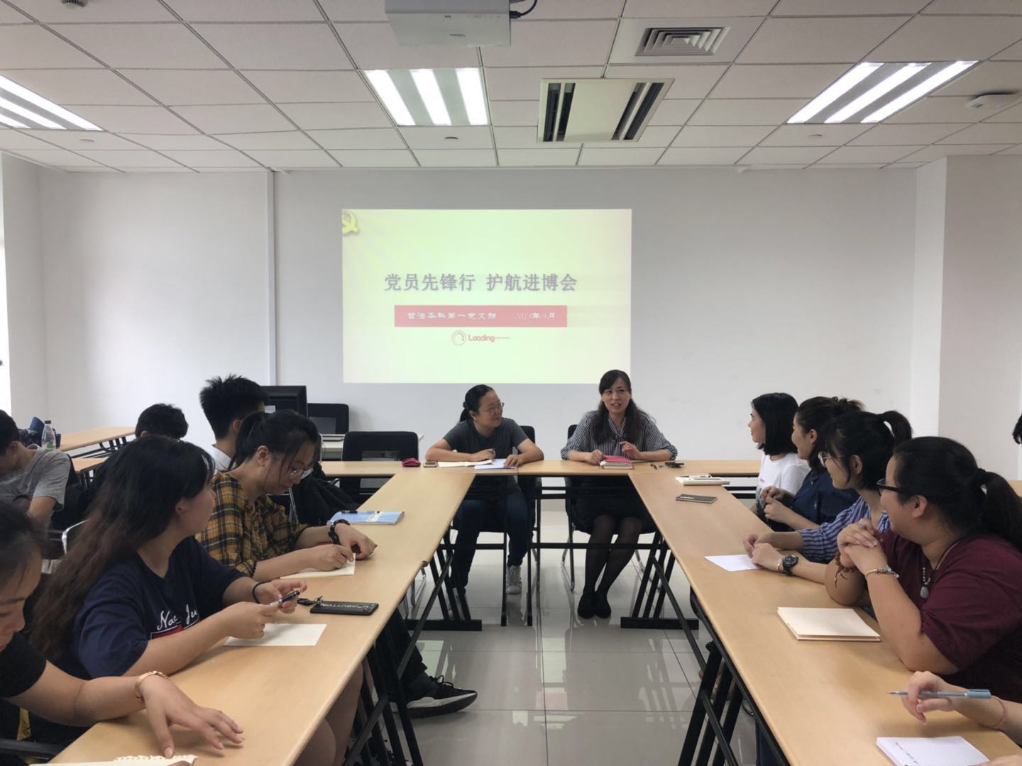 本次党日活动共有两项议程。首先,杨耀同志为大家介绍了进博会的相关背景和展馆情况,让党员们对进博会有进一步的了解,接着由翁佳伟同志传达了国家领导人有关进博会的重要指示和讲话精神。学习过后,党员们展开了热烈的讨论,从党员身份出发,提出要在学习、宣传、实践和奉献四个方面为进博会的召开贡献力量。