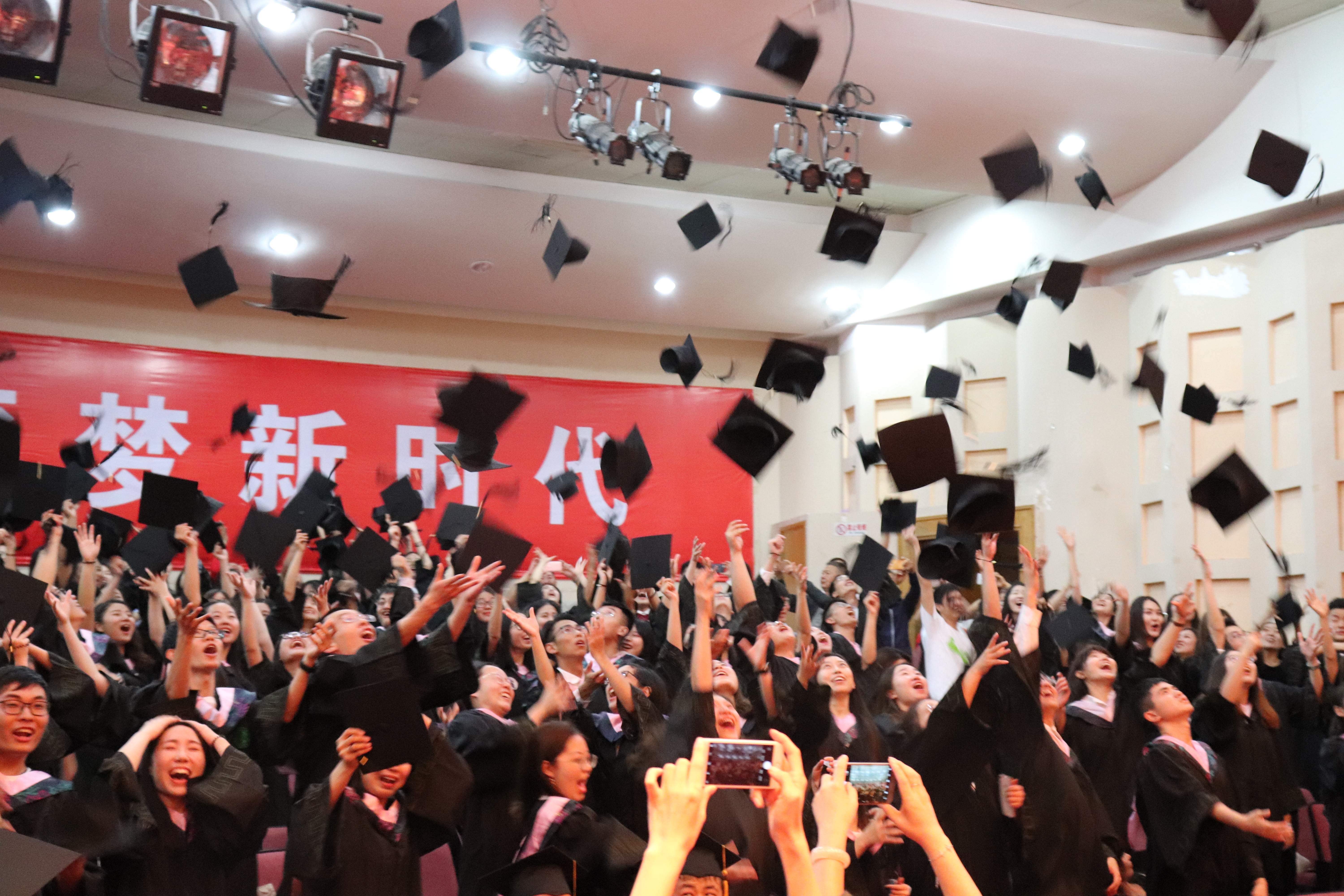 毕业典礼最庄严、最神圣的环节由院长蒋传光老师宣读获得学士学位名单并为毕业生拨穗,主席台的老师们全体起来为毕业生们正冠拨穗,祝福明天。