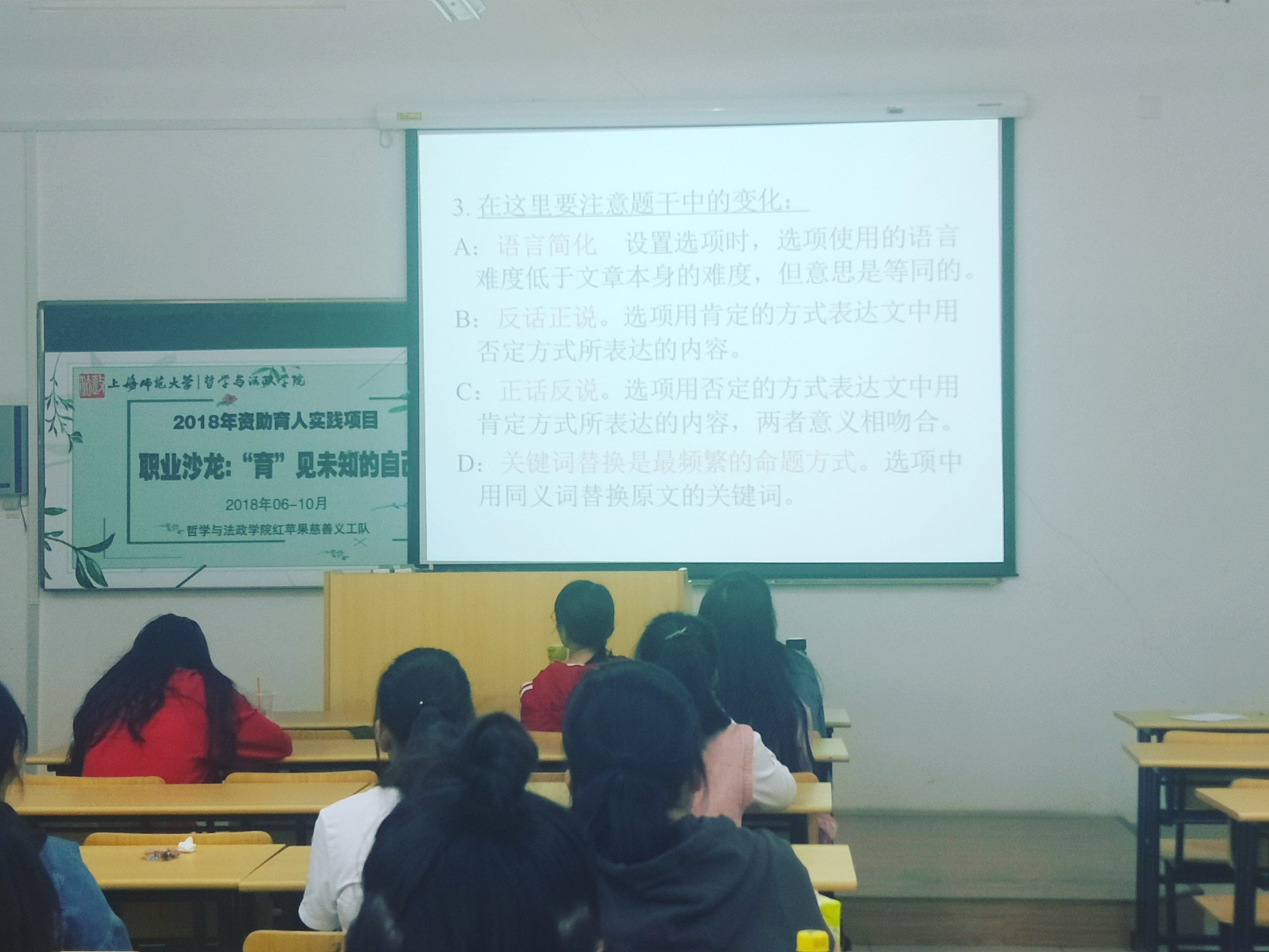 在本次活动中,江老师共传授了作文、听力、阅读、选词填空、翻译等多个方面的技巧。在介绍经验分享的同时,其结合自身教学经验,为同学们提供了可实践性强的方案,使得学生受益良多。