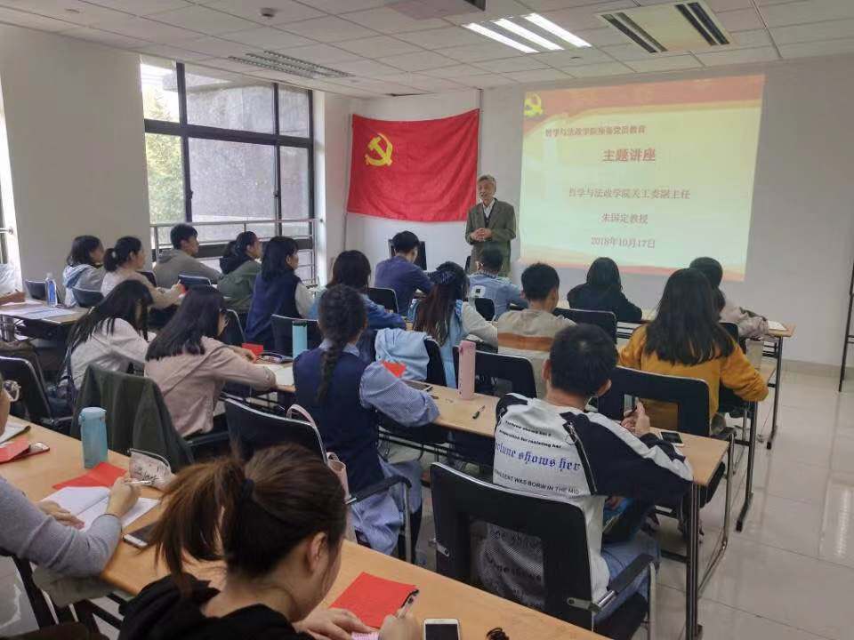 20181017日下午,完场足球赛果 于徐汇文科实验楼206举行了预备党员教育和入党宣誓大会,党员教育由完场足球赛果 关工委副主任朱国定老师主讲,来自徐汇校区和奉贤校区的研究生和本科生预备党员参加了本次会议,大会由辅导员王秀萍老师主持。