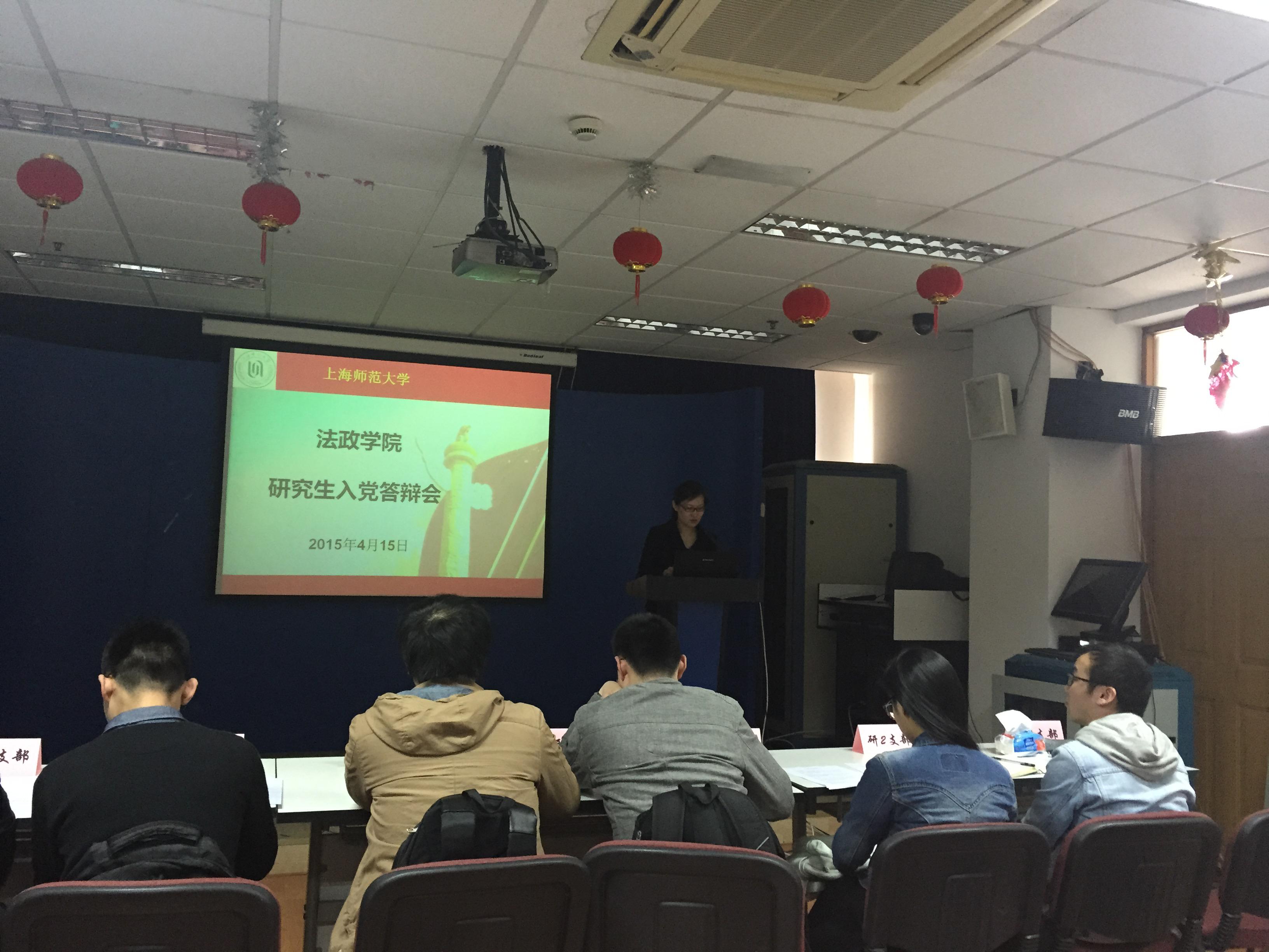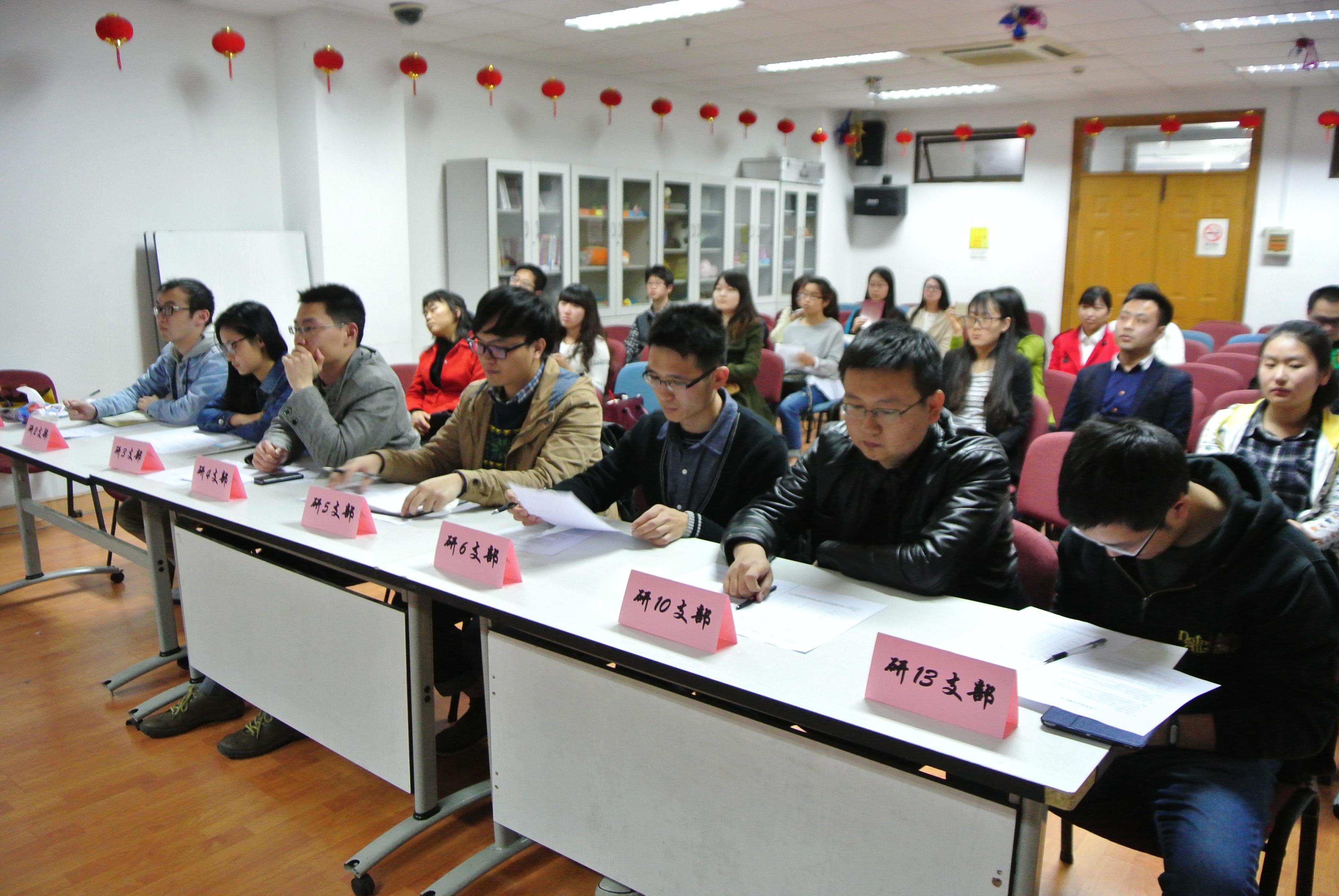 党委组织员陈敏老师,研究生辅导员王秀萍老师出席了本次答辩会。来自研究生第一、二、三、四、五、六、十、十三党支部的8名入党积极分子以及各自的入党联系人、介绍人参加了会议。上述8个支部的支部书记担任本次答辩会的评委。会议由第一党支部书记田思倩主持。