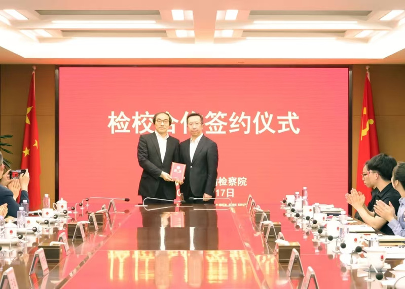 高亭代表完场足球赛果 ,与上海铁路运输检察院党组书记、检察长张炜,签署“检校合作”协议。
