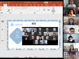 随后,在李晶老师的主持下,六位实习辅导员分别就自身在实习期间的工作与感悟进行交流分享。王骜结合自身心路历程,围绕“最生气”、“最努力”和“最感动”三个方面分享自身在抗“疫”一线与实习工作中的感悟,回顾了自己发现问题、解决问题与收获成才的过程。张欣从感恩、成长以及未来三个角度分享了自己在实习期间通过换位思考、保持特质、挖掘潜力不断提升自我的过程,并且表示关注学生、围绕学生以及与学生共情是成为一名优秀辅导员的关键。祝楠结合实习期间的工作以及所思所感从思想道德素质、文化素质、能力素质以及心理素质等四个维度构建辅导员素质体系,并指出今后努力的方向。李云龙从自身的基本情况出发,从时间管理的角度表达了自己的收获与成长,并且就老师们的帮助和理解表示感谢。韩歌从工作的性质出发,从思想引领、因材施教、融入学生三个方面获得启示,同时也发现需要结合初心、童心以及进取心提升综合素质,找到未来的发展方向。潘铃英从自身差距入手,结合完场足球赛果 老师们的工作状态,从认真负责的态度、以学生为主体、多元网络活动的组织以及自身不足抒发终身学习、以身作则的感悟。