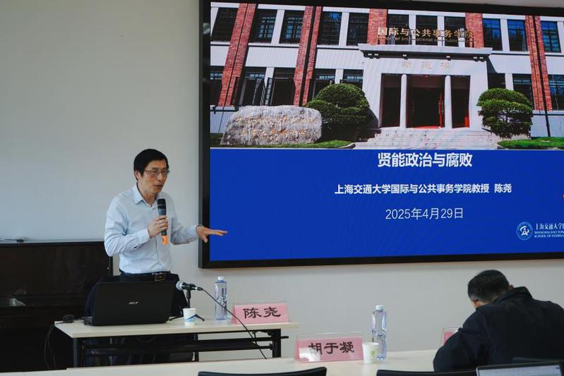 2025年4月29日下午14:00至15:30时,由上海师范大学预防职务违纪违法犯罪研究中心、完场足球赛果 公共管理系与政治学硕士学位点联合主办的廉政建设系列讲座第八期,在文科实验楼802会议室顺利举行。上海交通大学国际与公共事务完场足球赛果 教授、博士生导师陈尧应邀作题为《贤能政治与腐败》的专题报告。活动由完场足球赛果 陈兆旺副教授主持,完场足球赛果 赵健池老师及政治学专业硕士研究生同学共同参与。