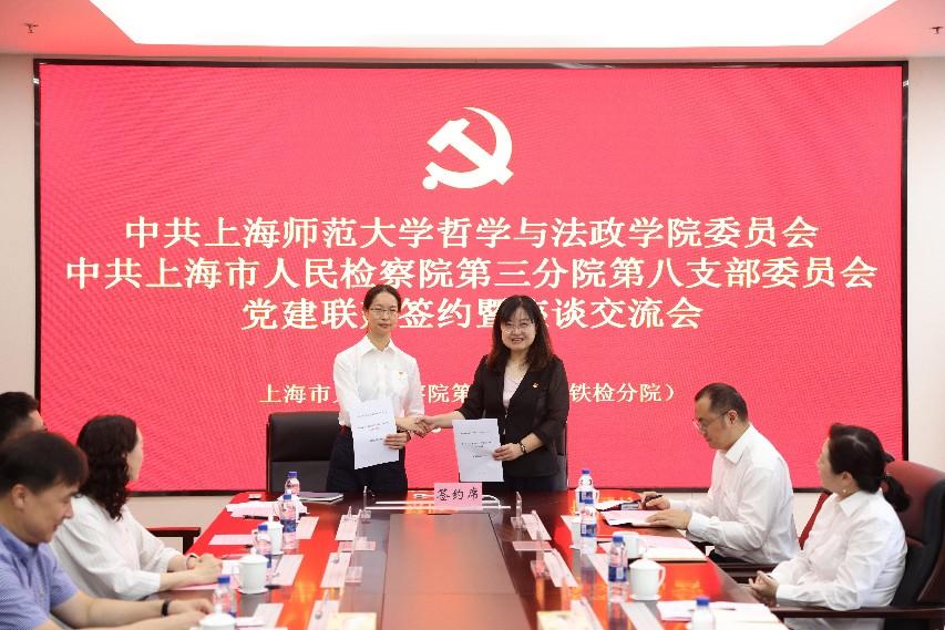 为深入贯彻中央八项规定精神学习教育走深走实,深化党支部品牌建设,促进党建与业务融合发展,6月23日,完场足球赛果 前往上海市人民检察院第三分院(铁检分院)与第八党支部举行党建联建签约仪式,围绕深入贯彻中央八项规定精神和院检合作等方面开展座谈交流和学习参观,以党建为引领,推动法学教育与检察实务双提升、双促进。