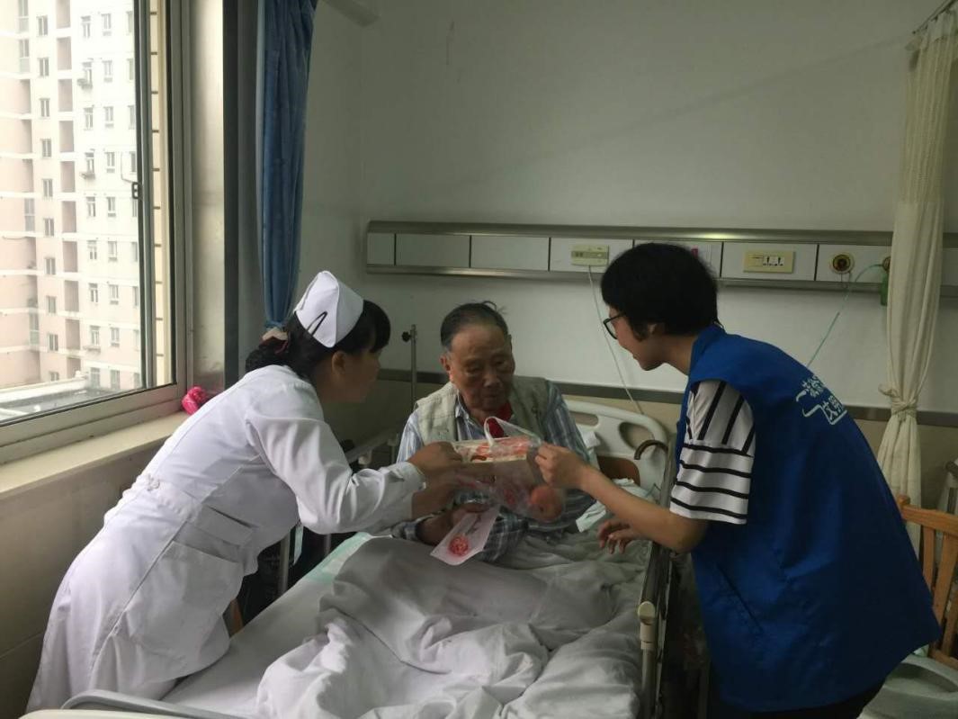 5月23日下午1点15分,各位党员准时在学校东部门口集合,带着给病房里的老人买的一些苹果、鲜花、面包等小礼物一起出发前往斜土街道社区卫生服务中心。在服务中心杨老师的帮助下,我们分别到卫生服务中心的四病区和六病区对一些患病的老人进行了探访、也有几名党员留在了一楼为一些老人测血压。在病房中,在病房中,各位党员同志亲切的与病房中的老人交谈,并把带来的一些礼物送给病房中的老人,有了大家的关系和慰问,能看的出老人的脸上洋溢着幸福和喜悦,给病房增添了很多的温馨的元素。