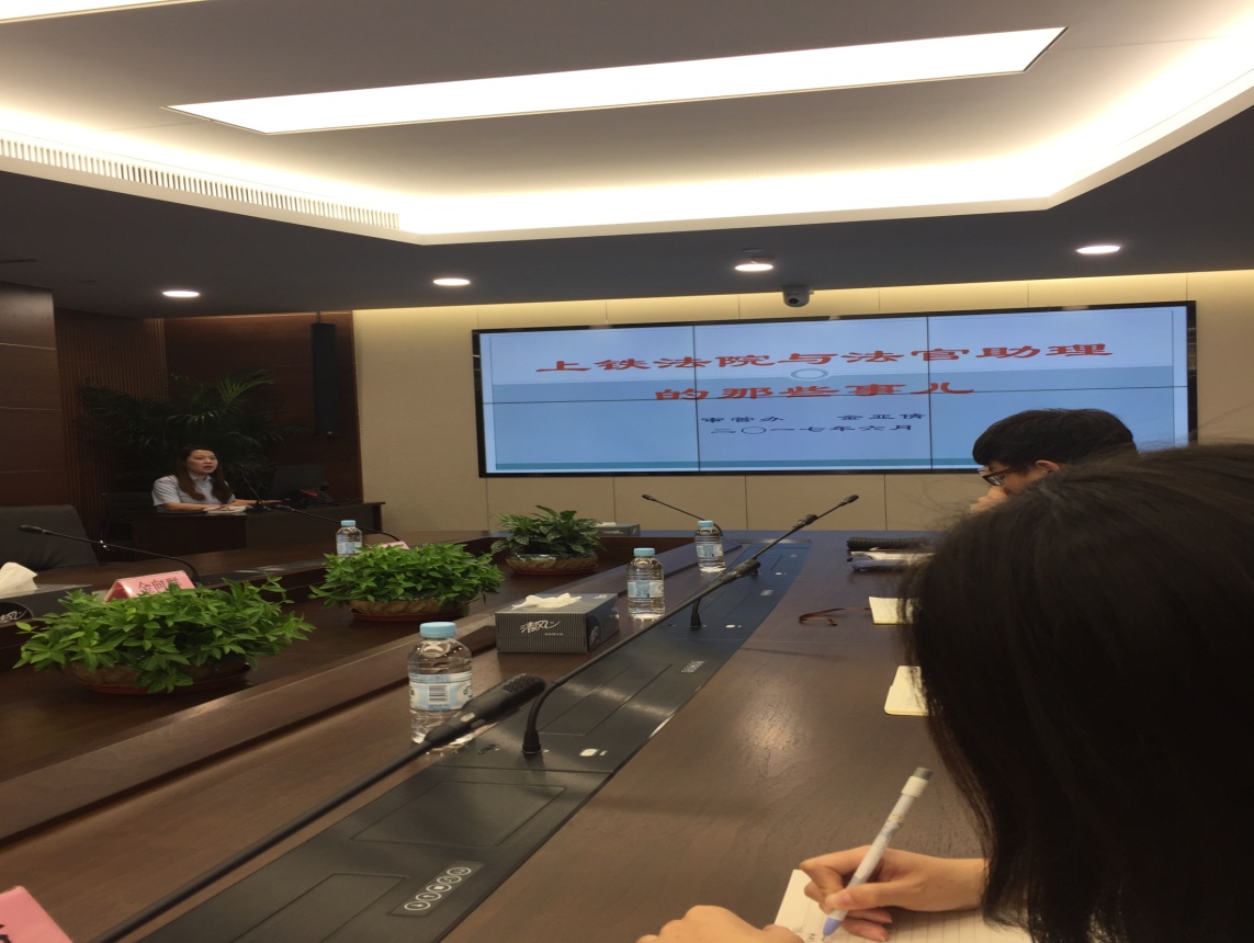 为了能够让实习生更好地了解上铁路法院和更快地适应实习环境,审监办的金亚倩法官对上铁法院案件审理中一些基本的法官职责和操作流程做了介绍,并对上铁法院的“做精专门管辖,做亮指定管辖”的目标进行了专门的讲解。