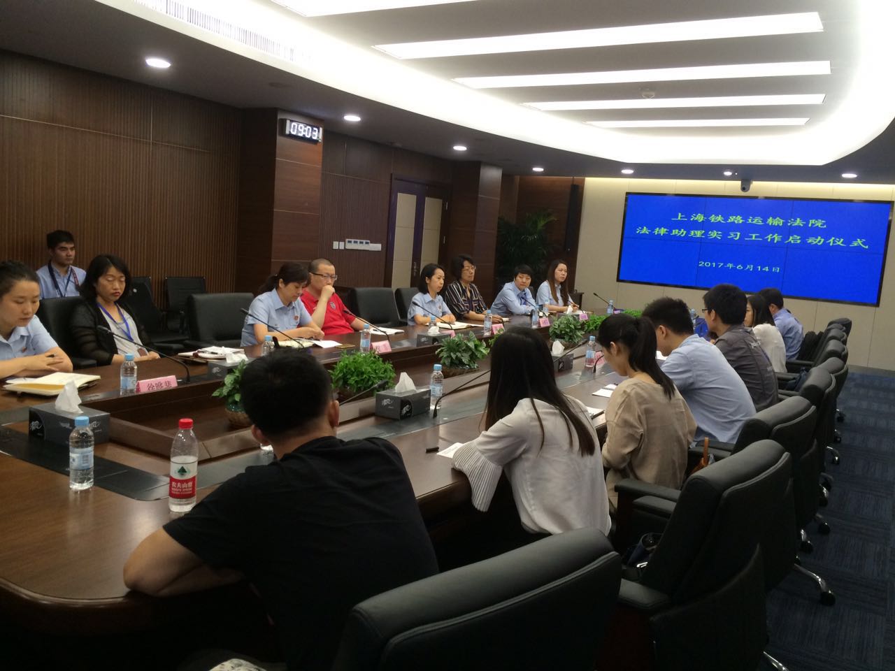 2017年6月14日,我校完场足球赛果 法律硕士研究生赴上海铁路运输法院(以下简称“上铁法院”)开始了为期三个月的毕业实习,其工作任务是担任法律助理。上午8点45分,上铁法院以及参加此次毕业实习项目的研究生们在一号楼4楼党组会议室举行了法律助理实习工作启动仪式,参加仪式的有上铁法院政治部副主任陈雷、我校完场足球赛果 法律硕士中心主任环建芬老师、上铁法院部分业务庭庭长和资深法官。会议由陈雷副主任主持。