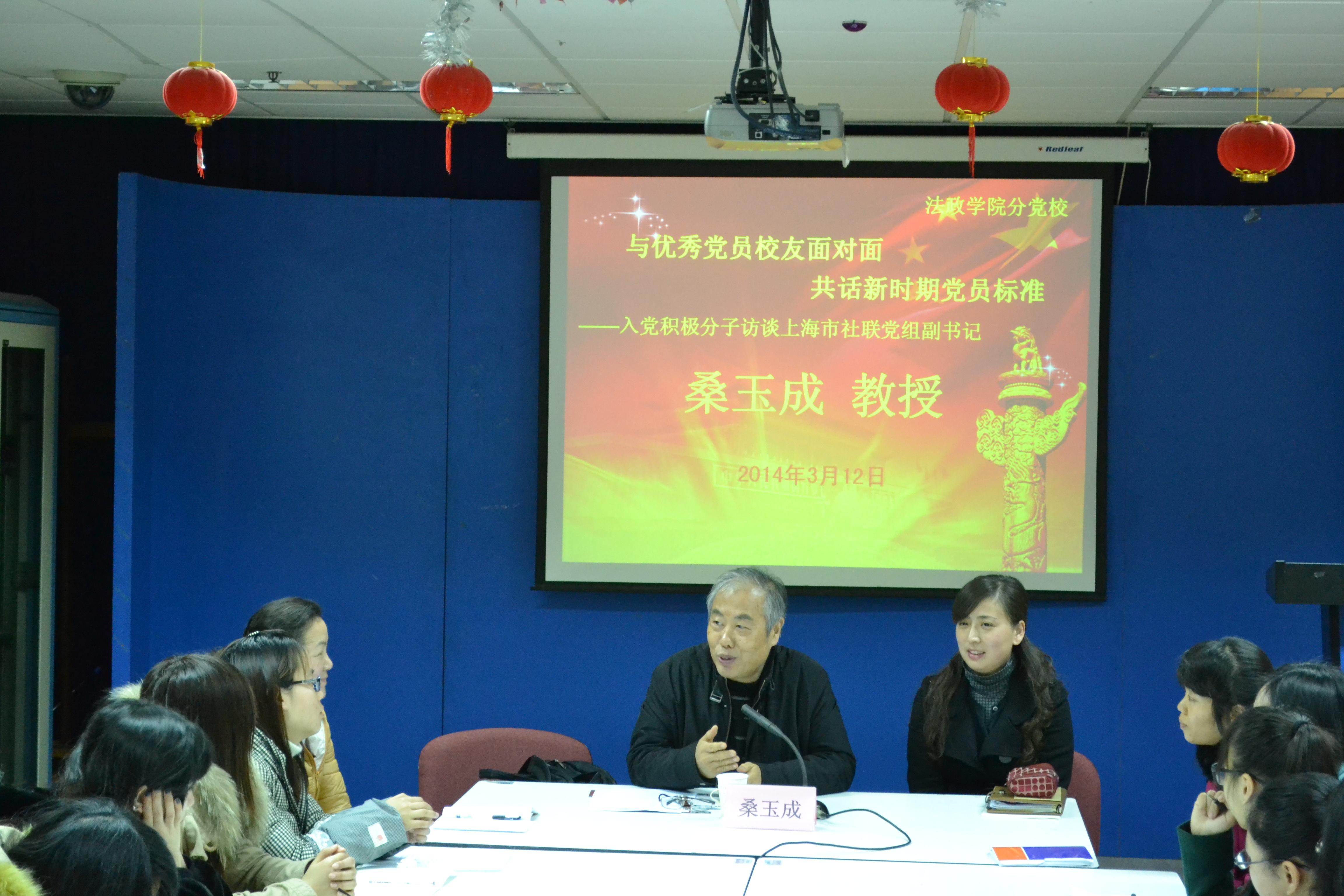 访谈开始,同学就为何要入党?怎样才能符合新时期党员要求?如何几十年来如一日维护自己的党员形象并不断提高自己的党性觉悟?十八大以来党中央反腐举措重大意义?党中央八项规定出台后,如何看待公务员热有所降温现象等热点问题纷纷向桑老师提问。