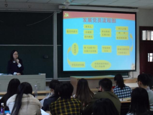 学生党员的发展概况,并对党组织如何在学习生活中考察同学,从哪些纬度来衡量一名合格的党员向同学进行了说明,为积极分子如何不断提升自己的党性,如何更进一步向党组织靠拢指明了方向。随后沈老师还对整个发展党员的流程进行了详细的梳理,使同学们对自己未来的入党程序和步骤有了清晰的了解。