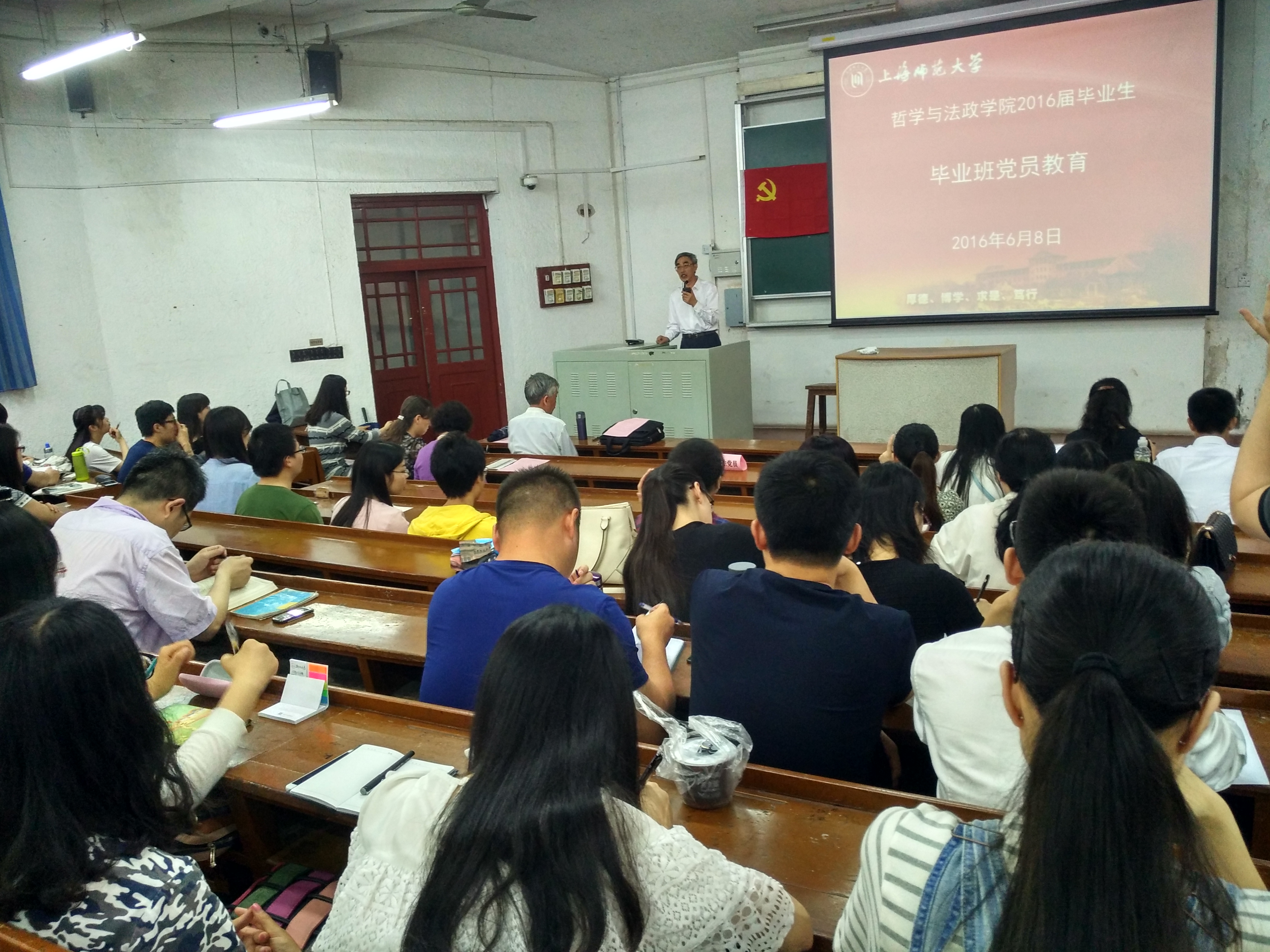 在徐汇西部校区西一教室召开2016届毕业生党员教育大会。院党委书记商红日、党委副书记陈燕、党委组织员陈敏以及研究生、本科生辅导员等领导和老师出席了大会。本次大会特邀请完场足球赛果