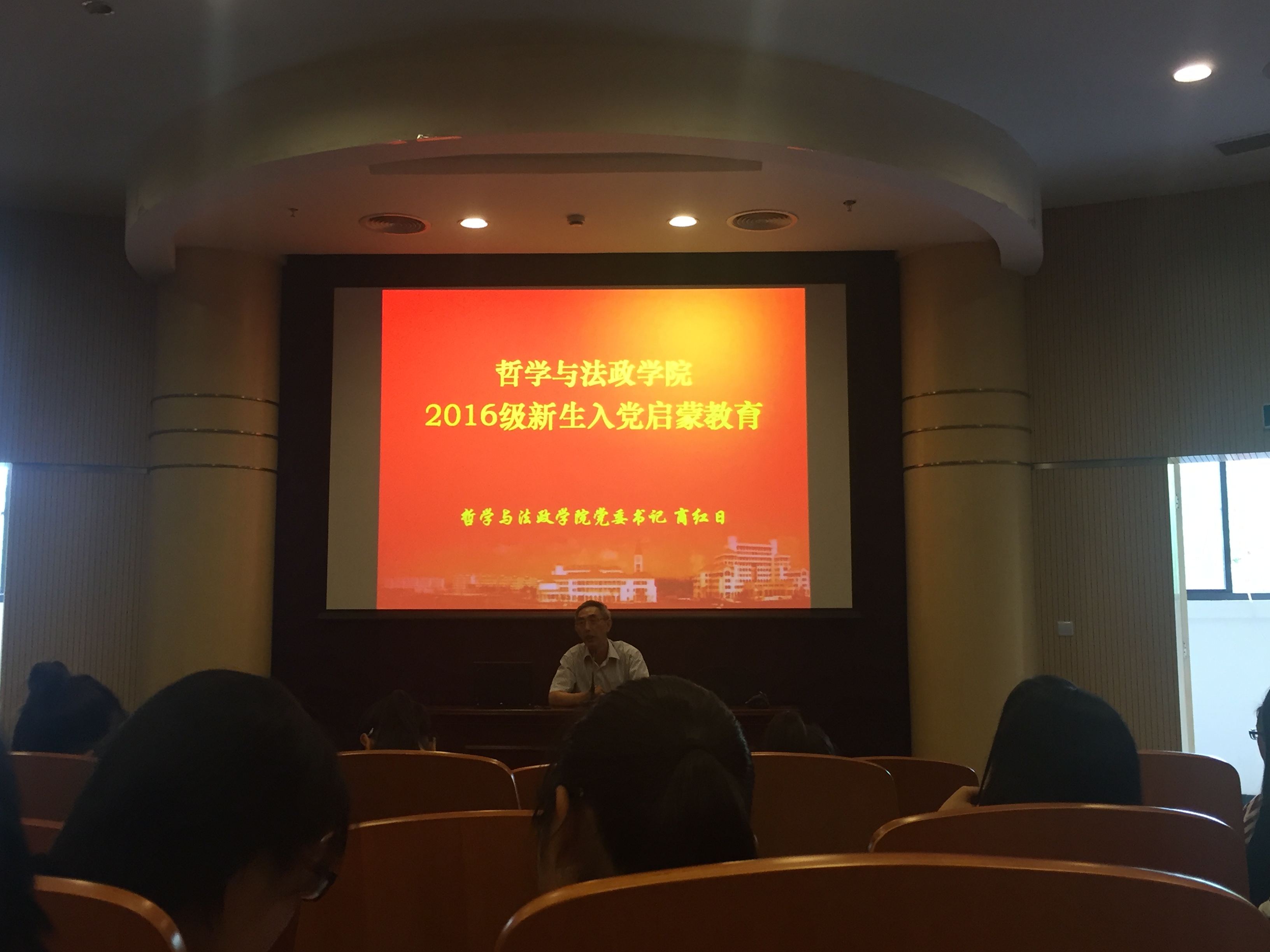 2016级新生来自全国四面八方,其中不少同学在高中阶段便积极提交了入党申请书并完成相应的党校学习,对入党具有强烈的意愿。商老师结合这样的背景,首先为同学讲解了自己作为高考状元的求学历程与入党经历,引起在场同学的共鸣,同时告诫95后同学保有纯洁的、端正的入党动机,凭借个人的实际行动力争早日加入党组织;“党员的素质其实就在我们的生活中可以体现,比如互帮互让,尊重别人。这些都不能脱离学习和大学生活。”紧接着商老师用语重心长的话语为同学讲解了一个党员的要求具体是哪些,在大学的生活中如何以党员标准严格要求自己,帮助同学明确奋斗的方向;最后,商老师落脚服务他人,指明入党积极分子要在学习和生活中具备服务与奉献精神,以牺牲“小我”来成就“大我”,在不断践行服务中增强党性修养,积极向党组织靠拢。