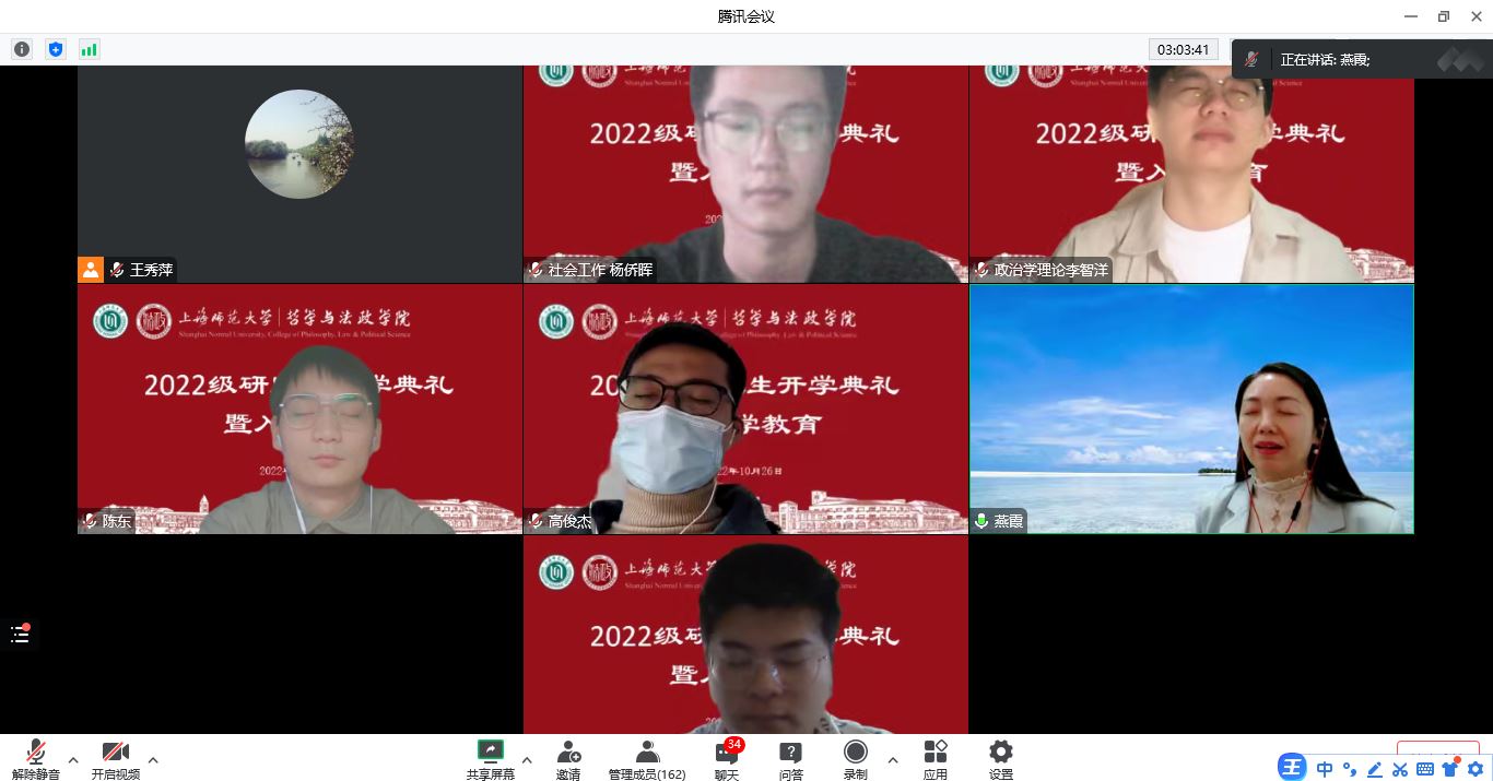 2022级研究生新生辅导员王秀萍结合研究生手册,为同学们介绍了上课时间、需要关注的主要网站和研究生期间主要奖项及评定细则,详细讲解了团学活动和研究生宿舍管理规定、课程安排、学分、毕业管理、开学注册、日常请假制度等基本事项,并强调了防疫要求。王老师希望大家做一名有规则意识、懂责任担当的研究生,构建自己的良好生态系统。