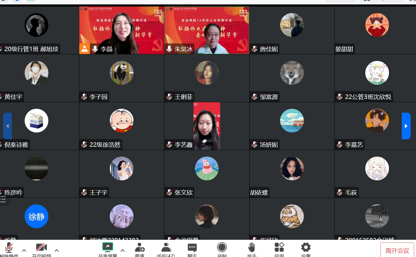 在交流环节,同学们将个人学生工作与朱老师所讲内容结合,提出音乐党课运用于支部建设中的可能性。对此,朱老师鼓励大家不断学习思考,通过曲目导赏、听歌问答等多种方式,将音乐党课融于支部建设中,在增强支部凝聚力的同时,激发成员的爱国热情。
