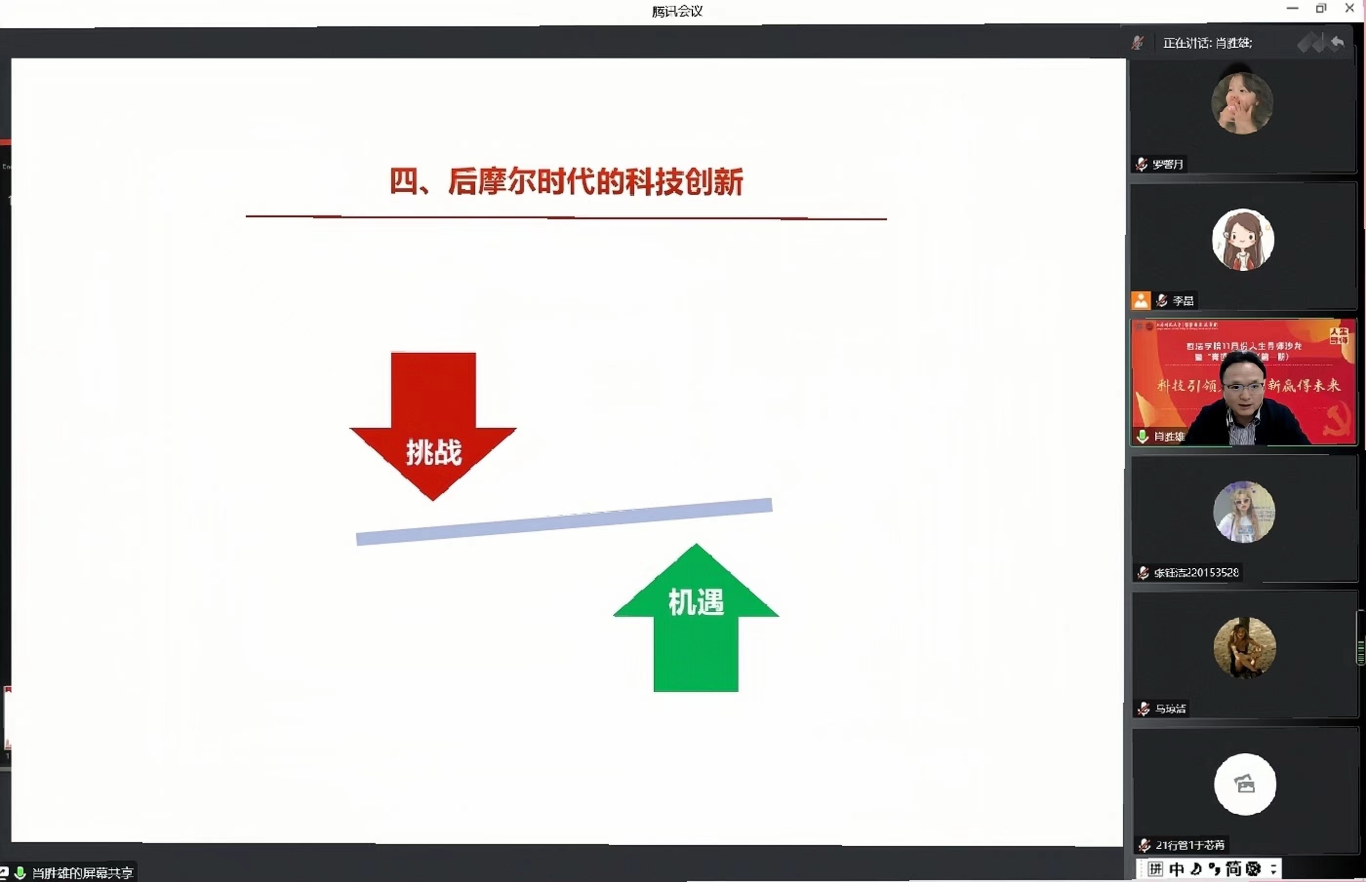 2022年11月23日,完场足球赛果 11月人生导师专题沙龙在腾讯会议顺利举行。本次讲座邀请到上海师范大学党的二十大精神中青年骨干理论宣讲团成员、化学与材料科学完场足球赛果 副院长肖胜雄老师作为主讲人。肖老师以“科技引领发展,创新赢得未来”为主题展开讲座,阐述了科技创新和自立自强的重要意义,呼吁同学们发挥专业所长,将个人发展融入国家战略,成长为国家和社会的有用之才。