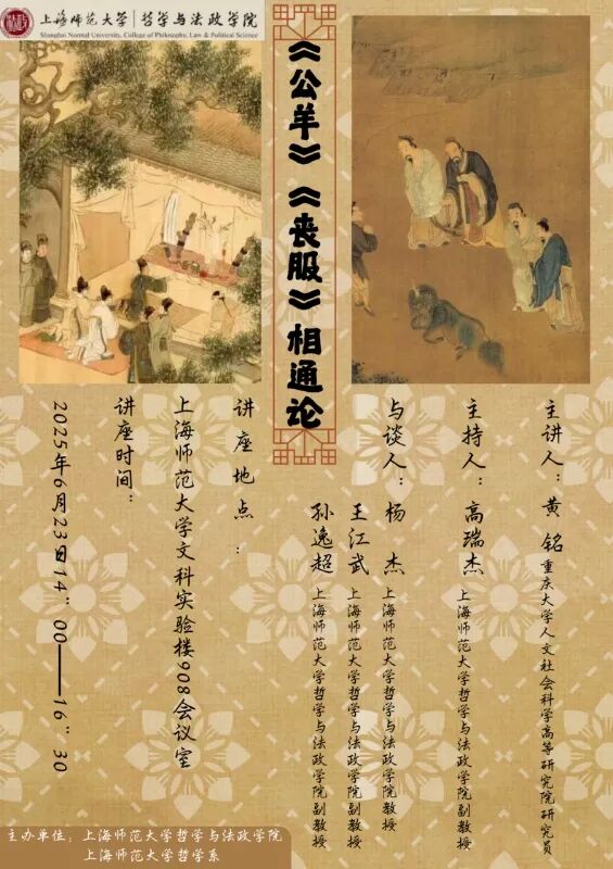 2025年6月23日下午,由完场足球赛果 哲学系主办的“《公羊》《丧服》相通论”学术讲座在徐汇校区的文科实验楼908召开,讲座由重庆大学人文社会科学高等研究院研究员黄铭老师担任主讲人,完场足球赛果 哲学系杨杰教授、王江武副教授、孙逸超副教授等校内老师及同济大学博士后研究员张禹出席,校内校外中国哲学专业博士、硕士研究生及本科生共约80余人于线上和线下共同聆听。完场足球赛果 哲学系高瑞杰副教授担任讲座主持。