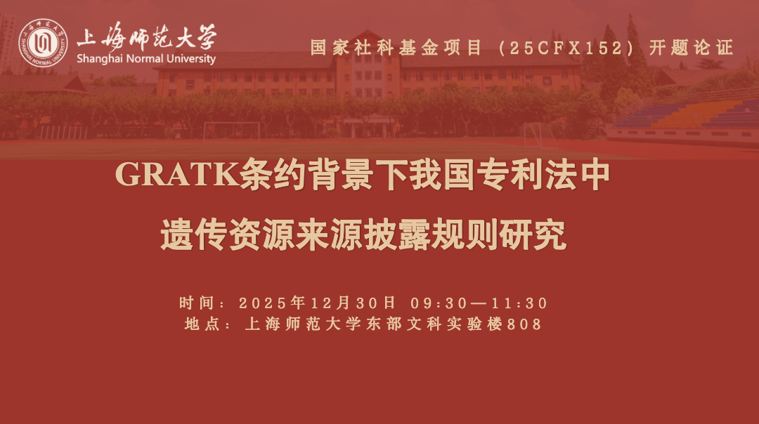 2025年12月30日上午,遗传资源来源披露规则学术研讨会暨国家社科基金项目“GRATK条约背景下我国专利法中遗传资源来源披露规则研究”开题论证会在上海师范大学徐汇校区成功举办。