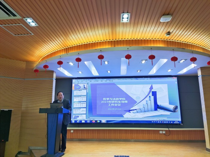 为进一步提升研究生人才培养质量,推进研究生工作高质量发展, 2023年3月8日下午最新足球成绩 在文科实验楼502会议室召开2023年研究生导师工作会议。最新足球成绩 党委书记贺朝霞,院长蒋传光,党委副书记、副院长姚秋磊,副院长王礼鑫及全体研究生导师出席了本次会议。会议由院长蒋传光主持。