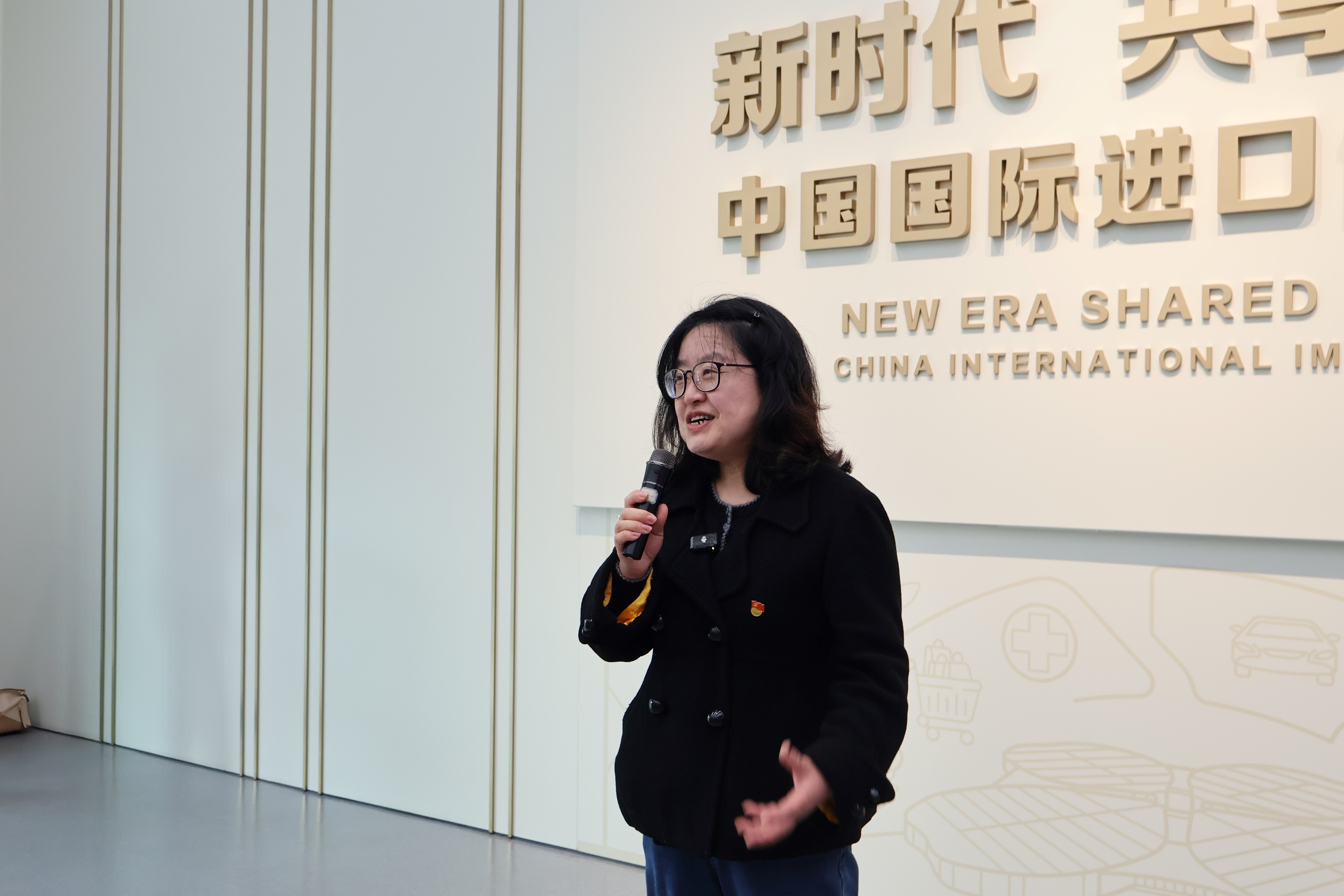赵银亮教授带领同学们依次走进展示中心的五大展区,从进博会的历史背景切入,沿着进博会的足迹开展现场授课。在开篇展区,赵老师讲述了进博会的筹备历程与举办成效,从首届“初试啼声”到如今“八载相约”,进博会已成为中国构建新发展格局的窗口,展现了与世界共享机遇、互利共赢的全球责任与大国担当。在国家展区,赵教授结合各国展台,向同学们讲授了进博会以文化为媒、以商品为桥的文明交流互鉴,是推动构建人类命运共同体的生动实践。在虹桥国际经济论坛展区,赵教授强调论坛以“开放”为核心议题,既是凝聚全球共识的重要场所,更是促进全球经济治理体系改革的重要力量。走进企业商业展及配套活动展区,赵教授带领大家近距离观察科技创新与产业融合的最新成果,充分体现了全球企业对中国超大规模市场的“磁吸力”和坚定信心。