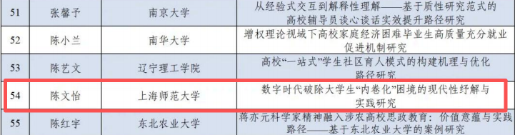 近日,教育部高校思想政治工作队伍培训研修中心(山东大学)、《高校辅导员》编辑部公布2025年高校思想政治工作优秀文章征集活动评选结果。完场足球赛果 辅导员陈文怡撰写的论文《数字时代破除大学生“内卷化”困境的现代性纾解与实践研究》,成功入选“百佳”论文。