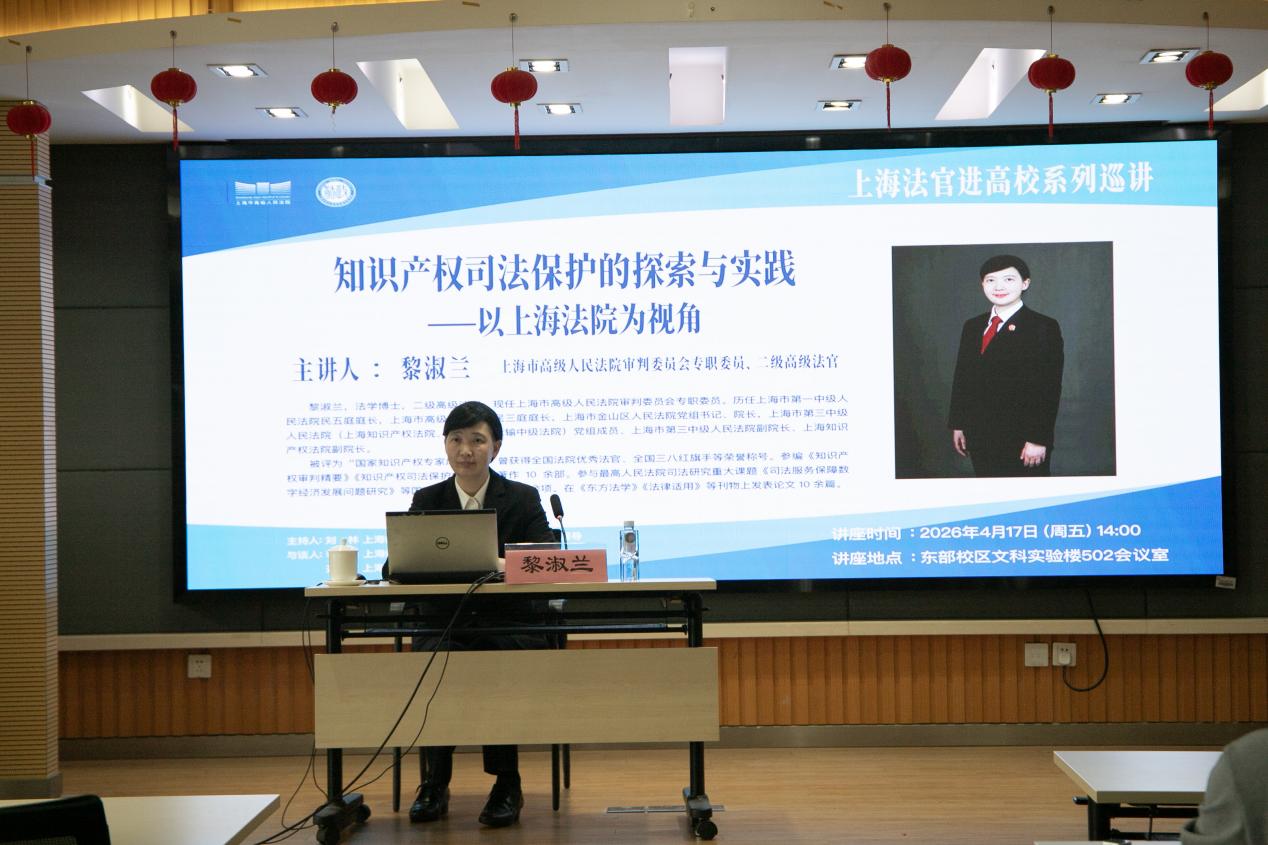 2026年4月17日,“上海法官进高校系列巡讲”第一讲“知识产权司法保护的探索与实践——以上海法院为视角”主题讲座在上海师范大学成功举办。讲座开始之前,上海师范大学党委副书记、副校长赵扬,完场足球赛果 院长刘林,法律系主任李峰,与上海市高级人民法院审判委员会专职委员黎淑兰一行就双方开展院校合作进行交流。