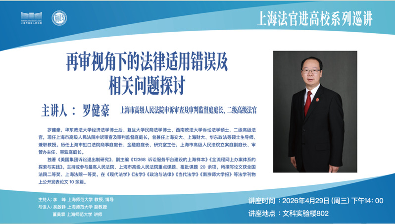 上海法官进高校系列巡讲:再审视角下的法律适用错误及相关问题探讨