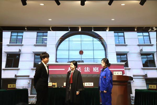 启动仪式上,上海师范大学法学社自编、自创、自导的模拟法庭情景剧《晓燕维权路》进行了表演。